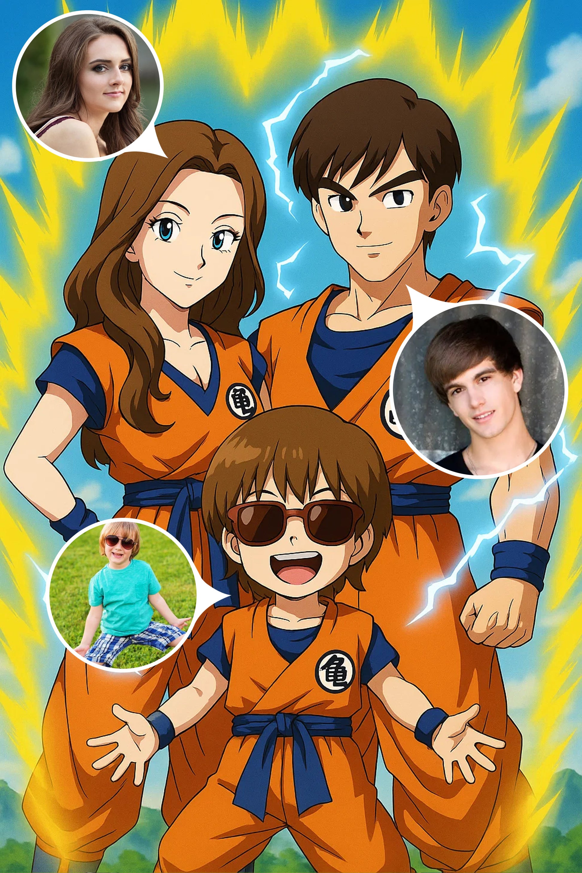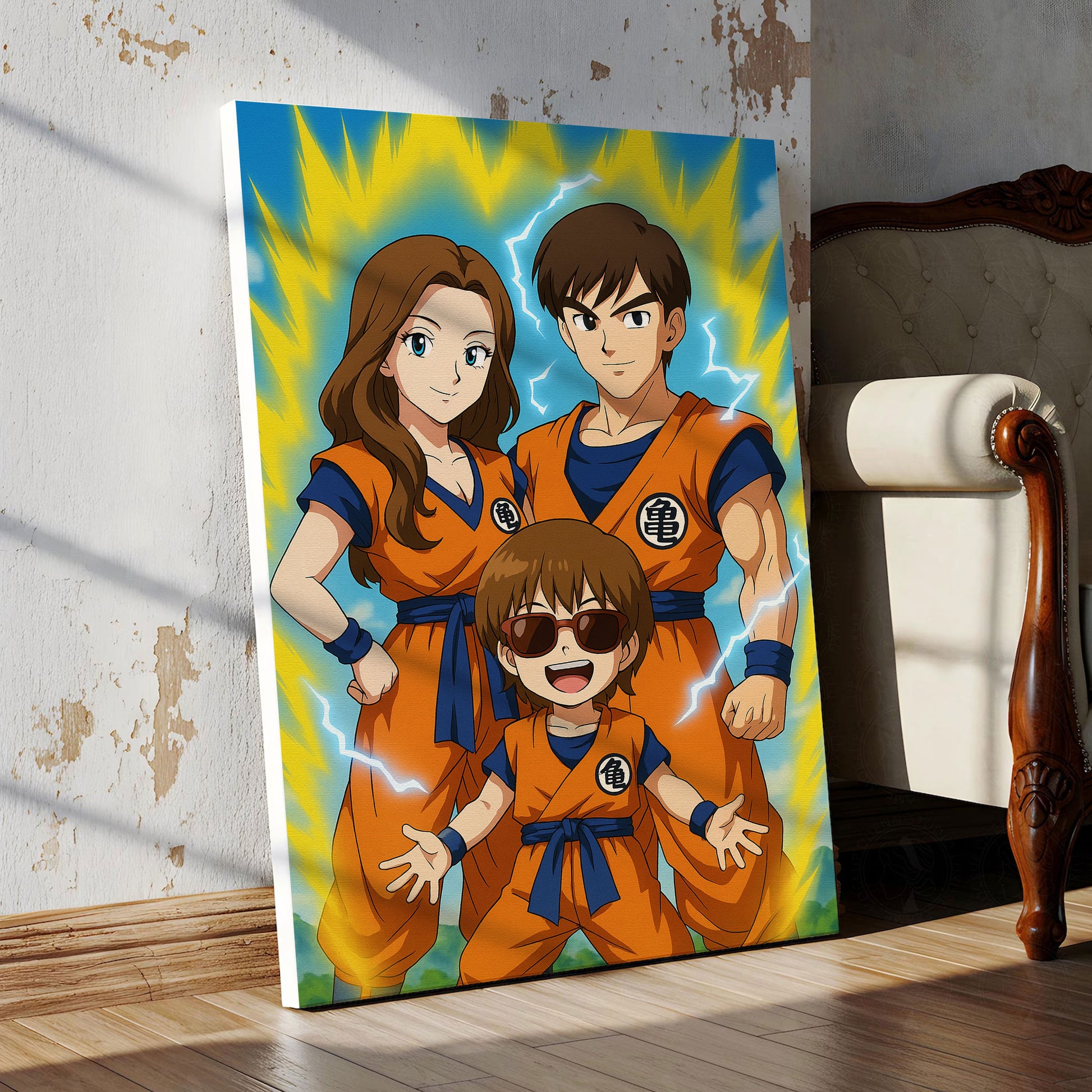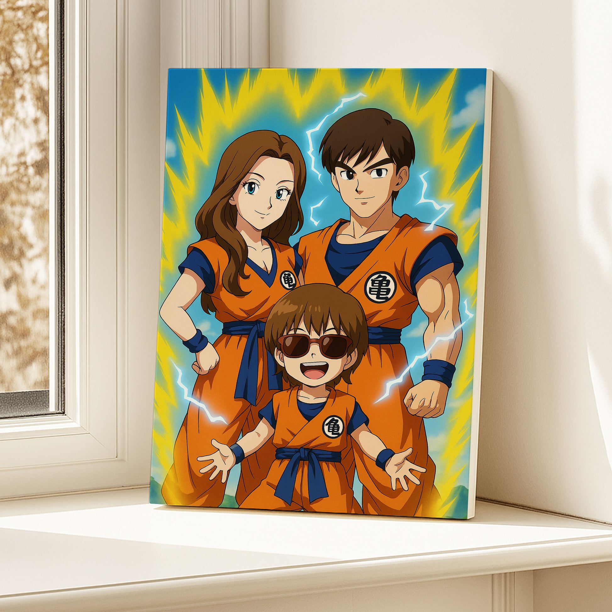 Each canvas print is expertly personalized, turning your photo into a Dragon Ball-style character with all the strength, determination, and energy of your favorite Saiyan warriors. Whether it’s a special family moment, a favorite pet, or a heroic photo with friends, we bring your vision to life with Dragon Ball-inspired detail and flair.
