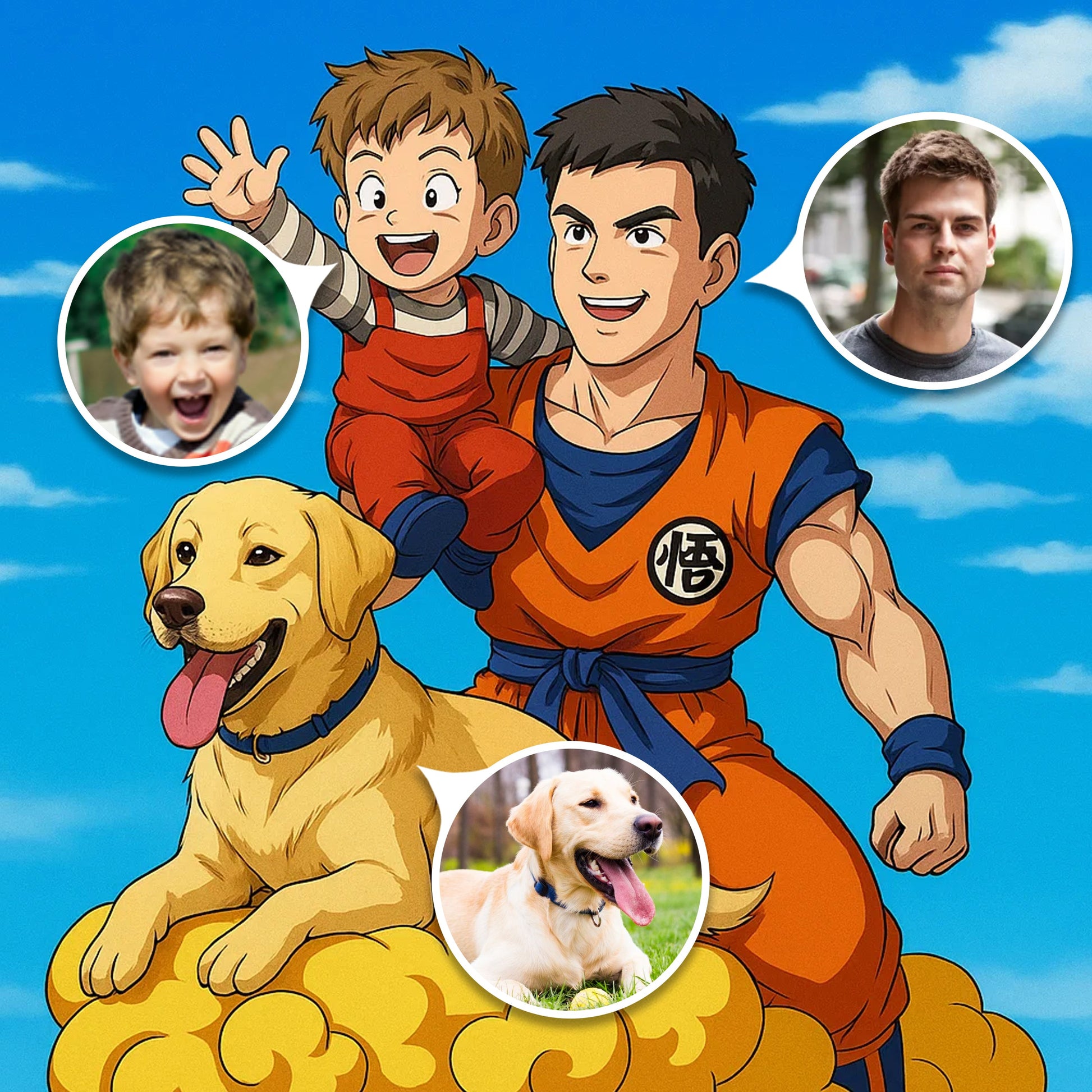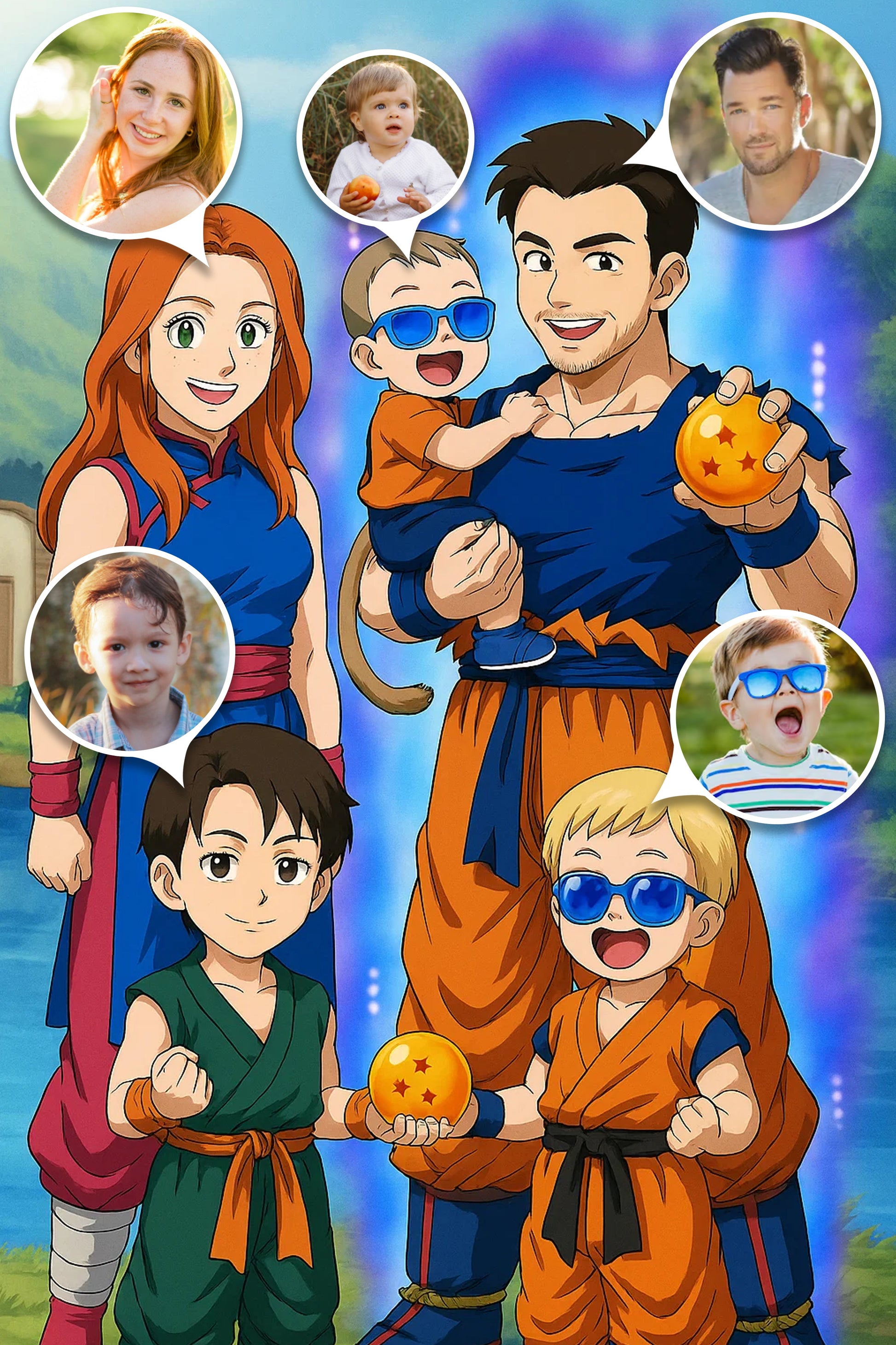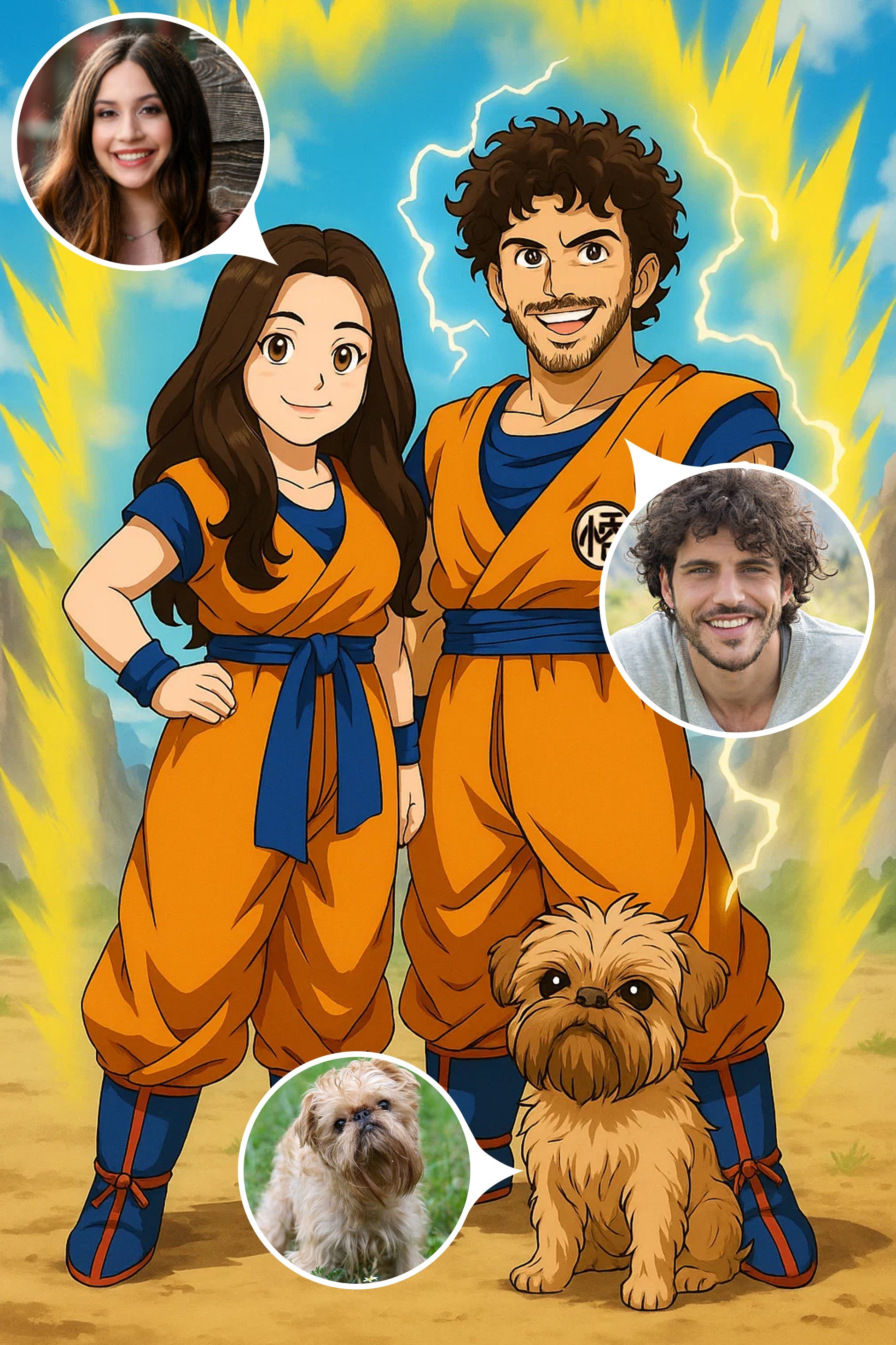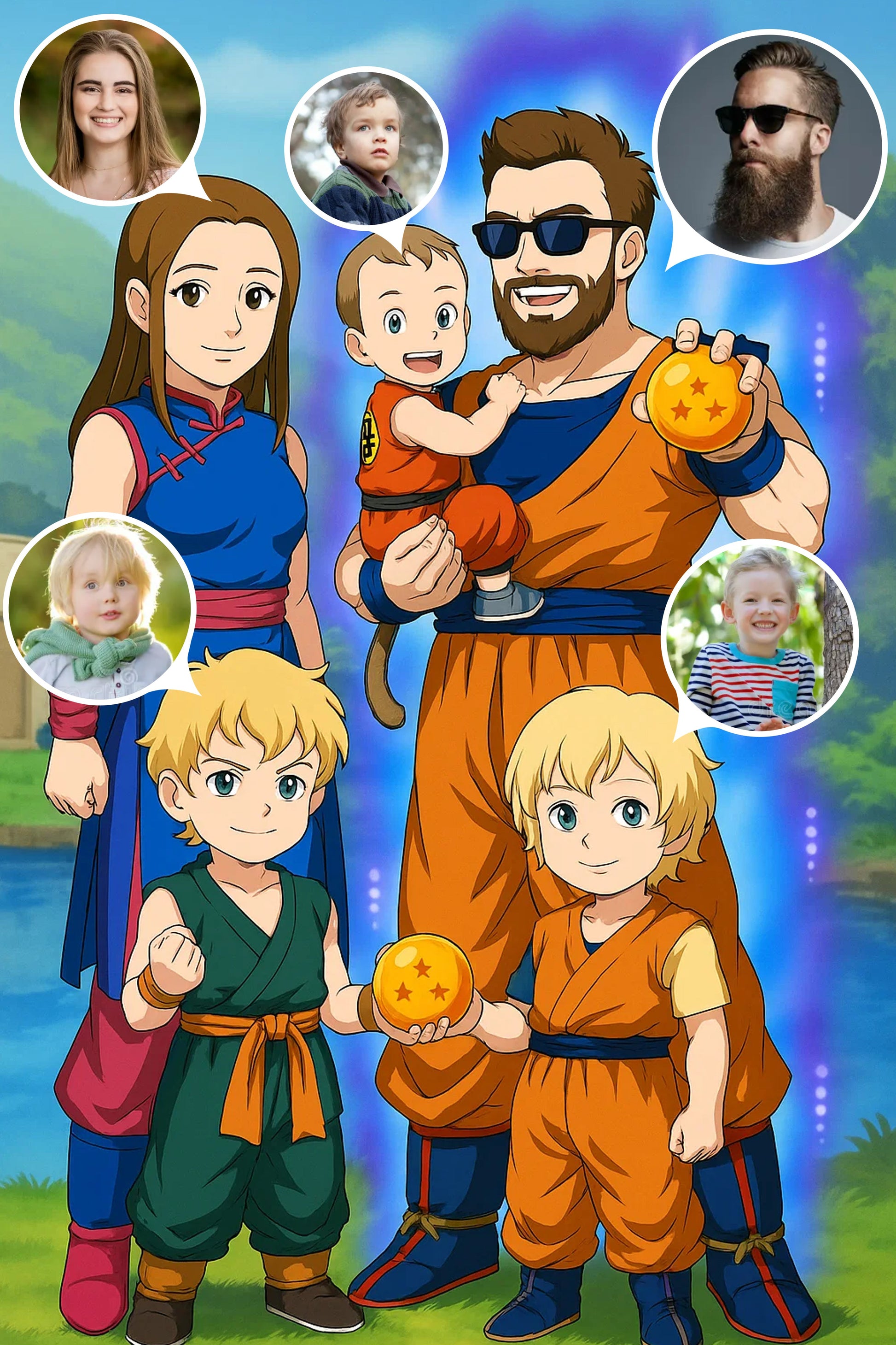 Each canvas print is expertly personalized, turning your photo into a Dragon Ball-style character with all the strength, determination, and energy of your favorite Saiyan warriors. Whether it’s a special family moment, a favorite pet, or a heroic photo with friends, we bring your vision to life with Dragon Ball-inspired detail and flair.