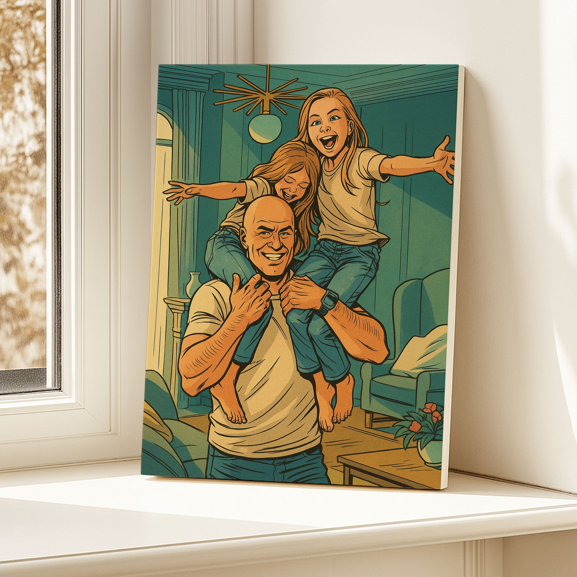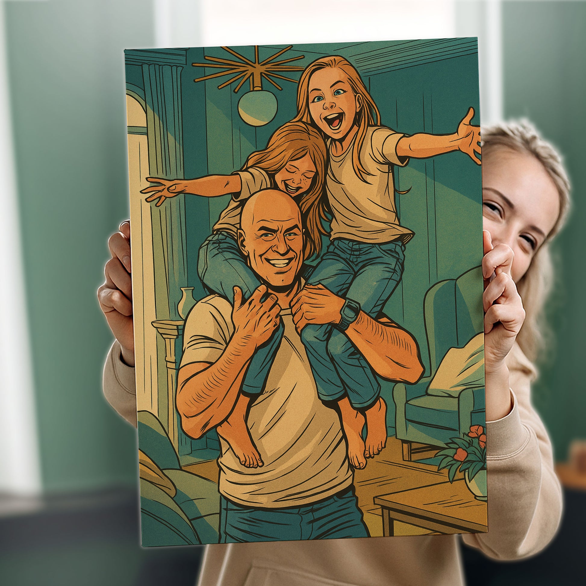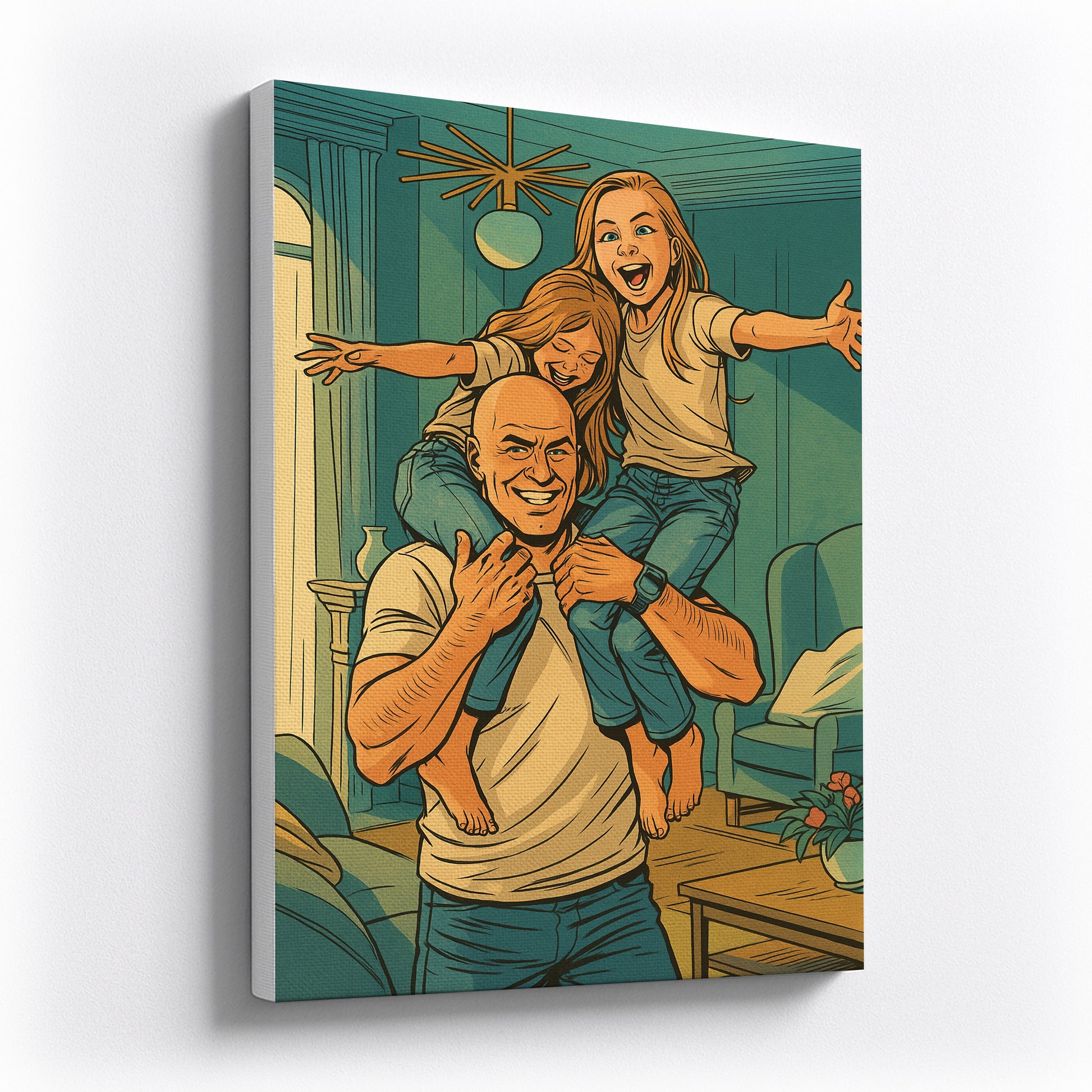 Celebrate your family’s heroic moments with a custom **DC Comics style portrait canvas**.