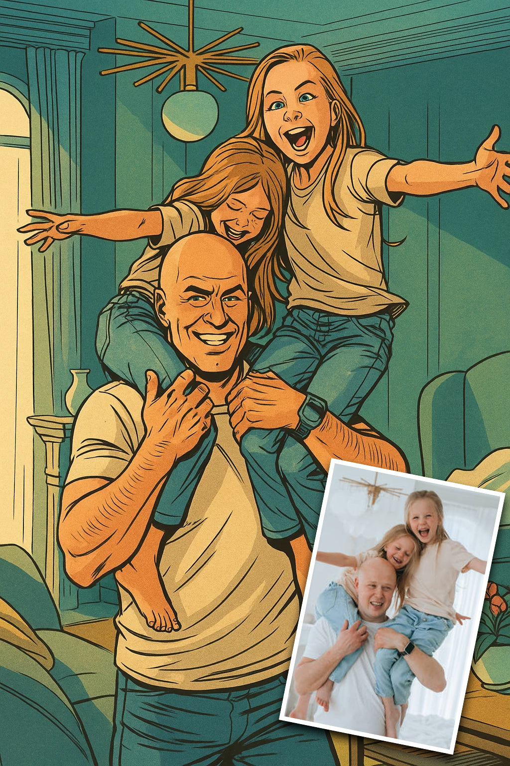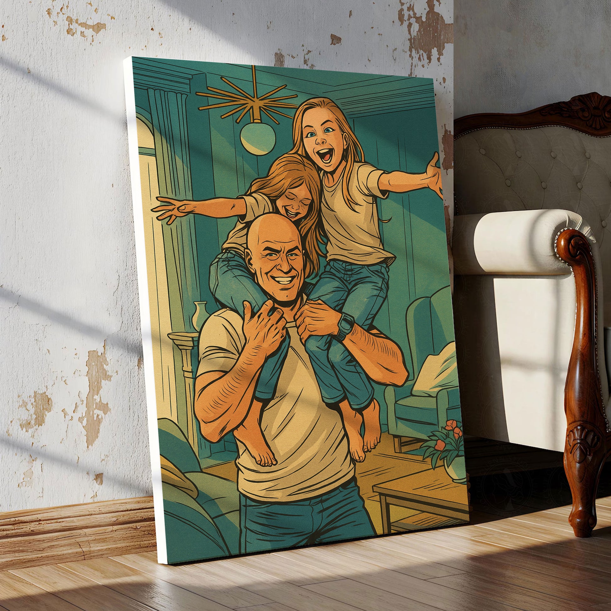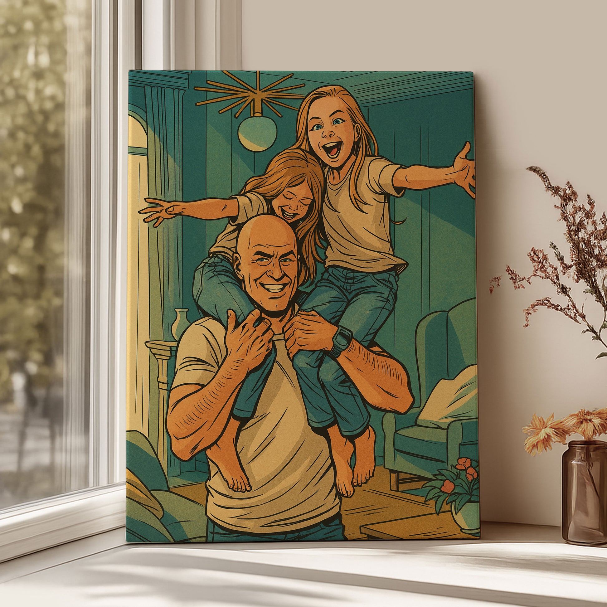 Celebrate your family’s heroic moments with a custom **DC Comics style portrait canvas**.