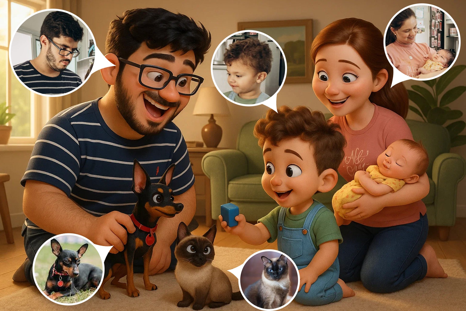 Disney Inspired Father & Sons Portrait – Custom 3D Cartoon Fairytale Art