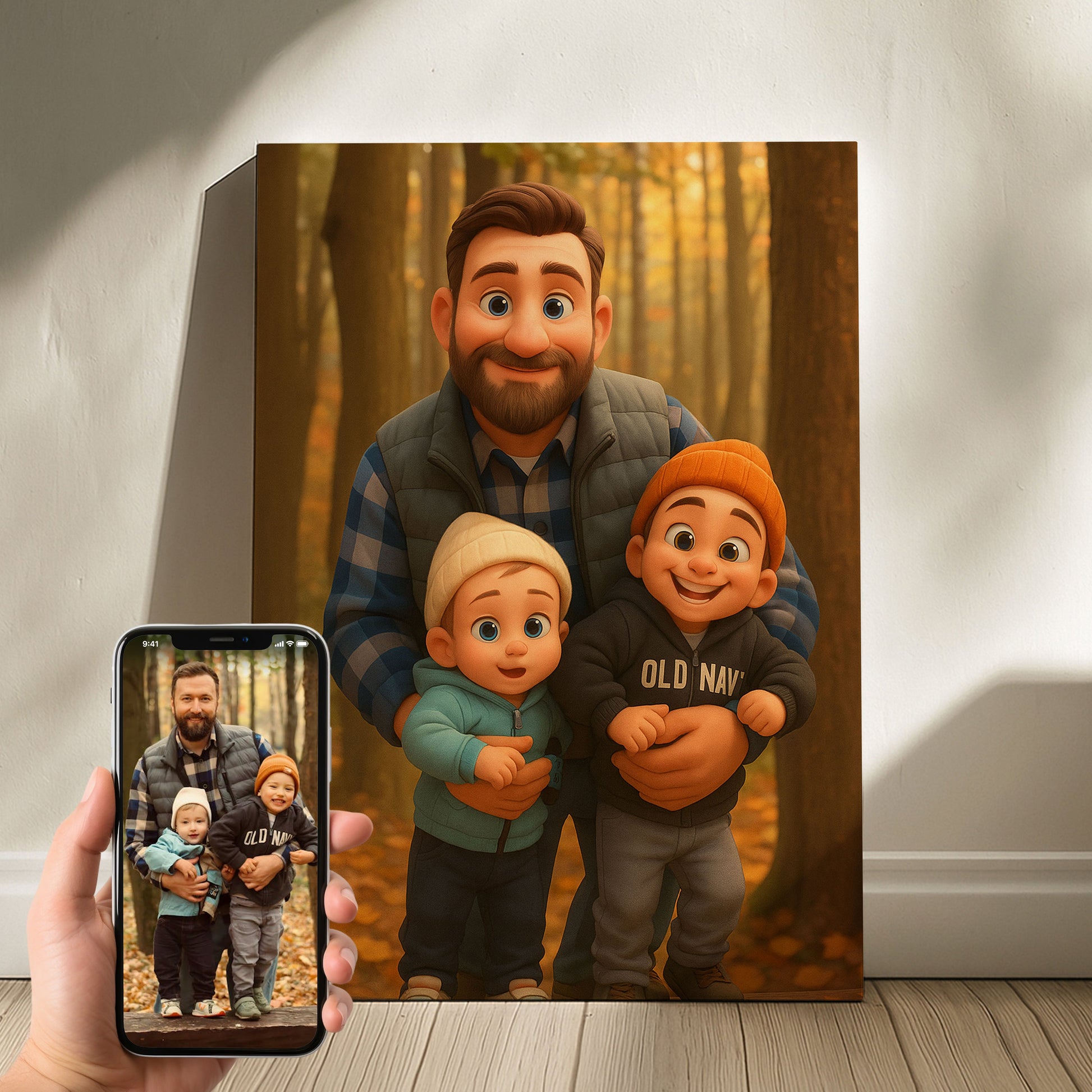Perfect as a Disney fan gift, Father’s Day surprise, or unique Disney wall art, this artwork can be printed on high-quality canvas ready to display or delivered as a digital file for easy printing. Every portrait is crafted with expressive characters, rich colors, and a magical atmosphere to capture your family’s love and joy.