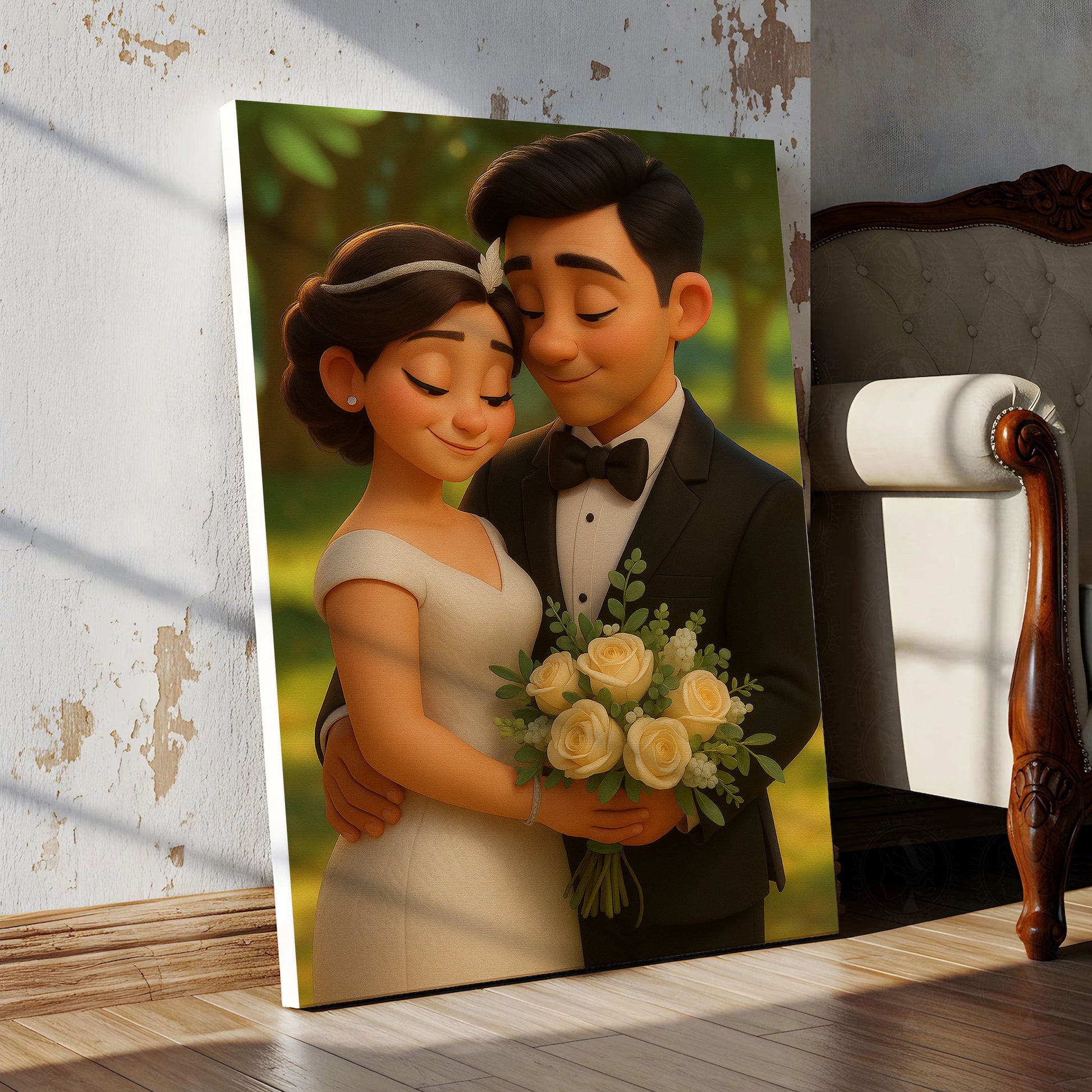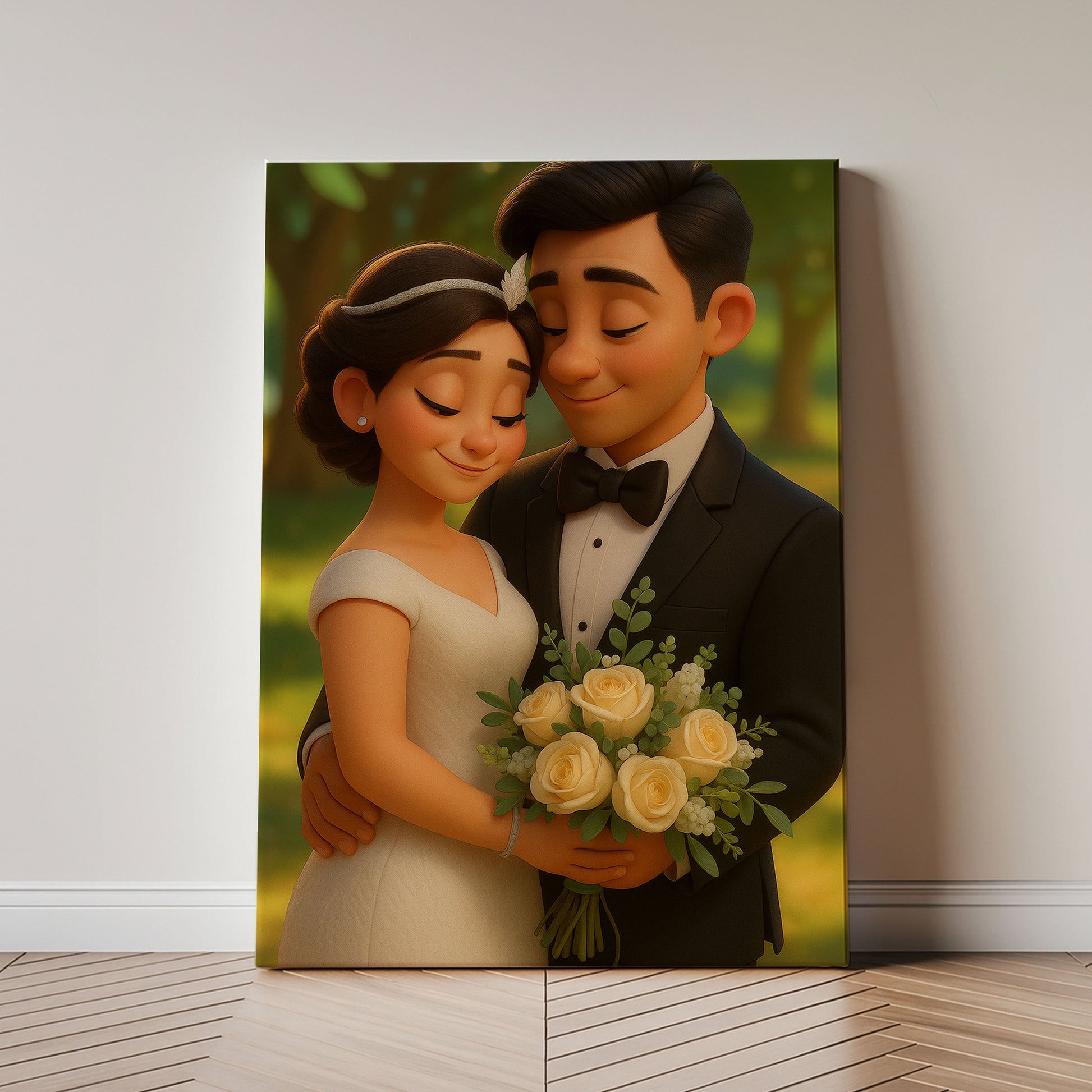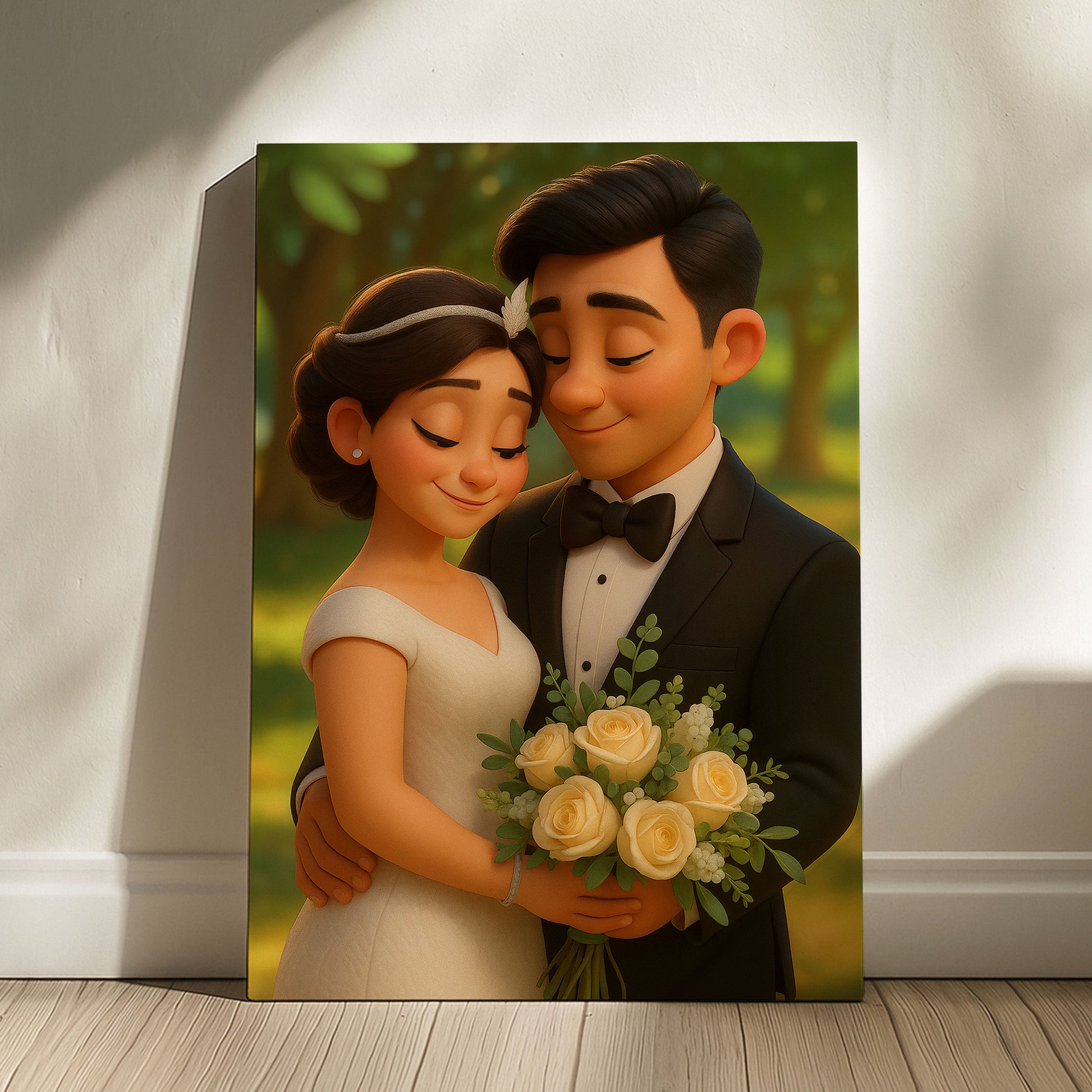 Disney Style Wedding Portrait – Custom Couple Cartoon Artwork for Newlyweds